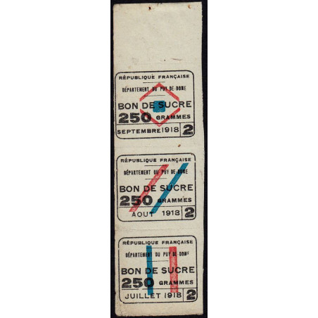 Rationnement - Sucre - 07/1918 à 09/1918 - Puy-de-Dome (63) - Etat : TTB+