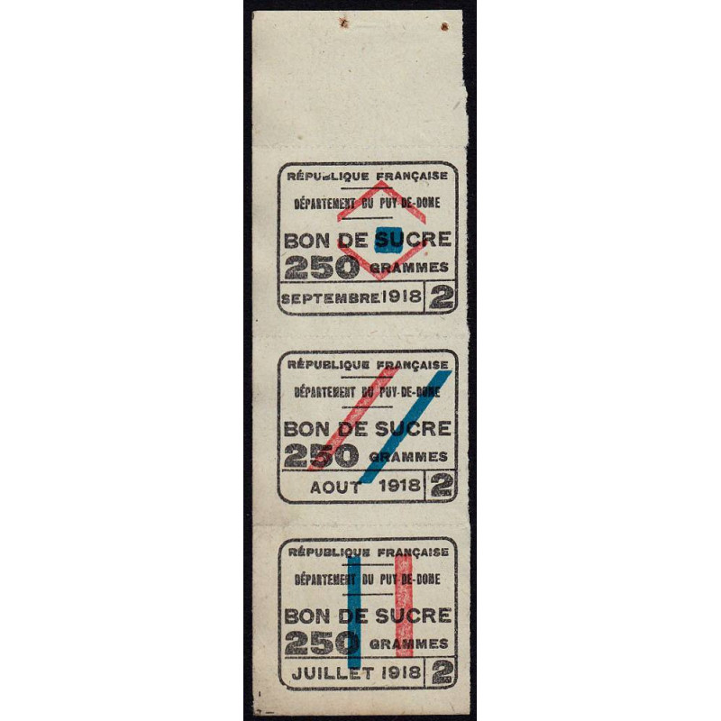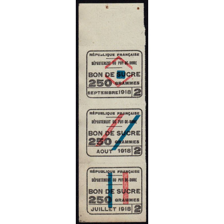 Rationnement - Sucre - 07/1918 à 09/1918 - Puy-de-Dome (63) - Etat : SUP