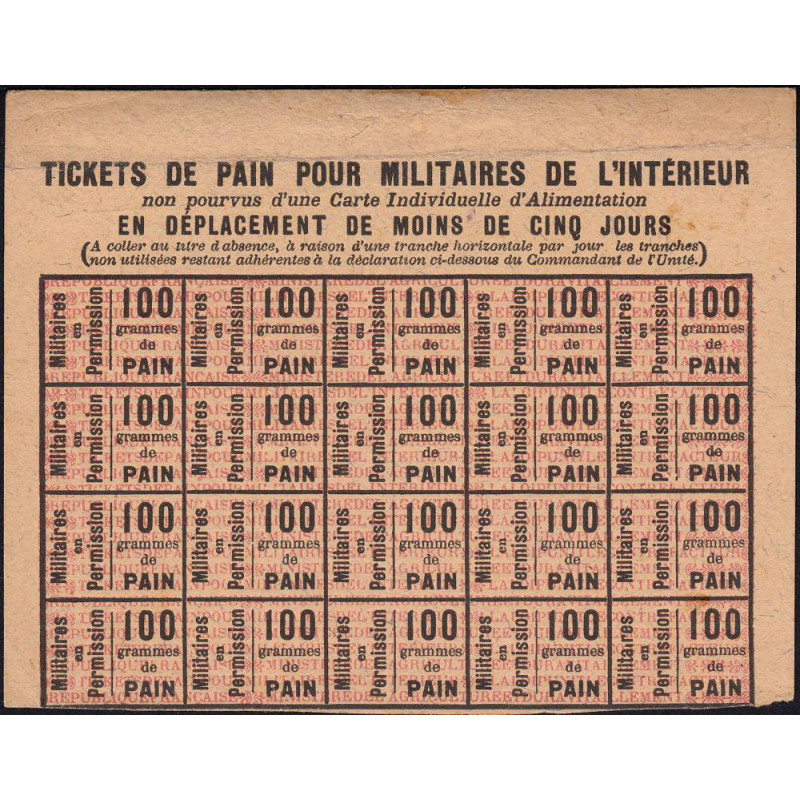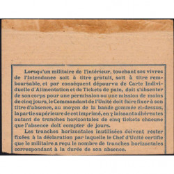 Tickets de pain pour militaires de l'intérieur en déplacement de moins de cinq jours (en permission)
