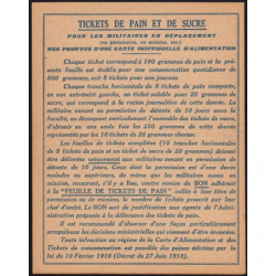 Tickets de pain et de sucre pour militaires de l'intérieur en déplacement de moins de cinq jours (en permission)