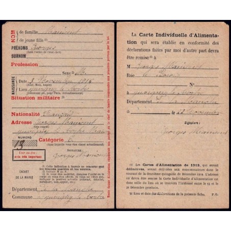 Demande carte individuellle d'alimentation - Catégorie E - 1918 - Juvigny-les-Vallées (50) - Etat : TTB