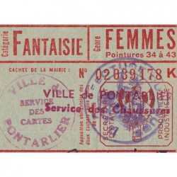 • Coupon achat chaussures - Réf : 33 - Type 5b - 1945 - Pontarlier (25) - Etat : TTB
