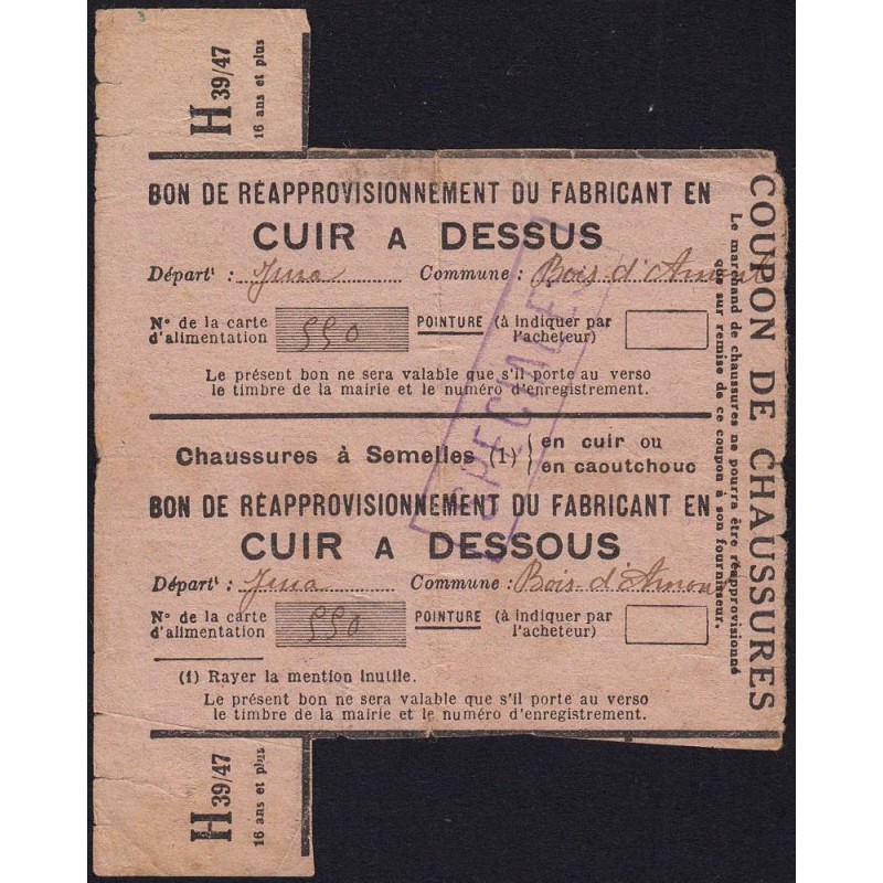 Coupon de chaussures - Réappro. - Type 1a_2 - 1941 - Bois d'Amont (01) - Etat : TB-