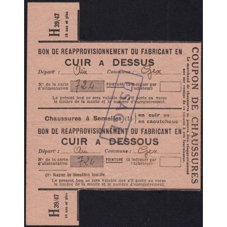 Coupon de chaussures - Réappro. - Type 1a_2 - 1941 - Gex (01) - Etat : TTB