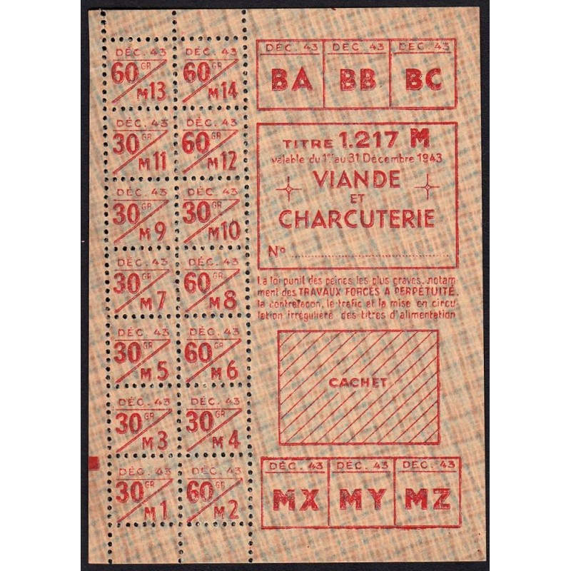 • 1943 - Titre 1217 - Viande et Charcuterie - Catégorie M - Décembre - Etat : NEUF