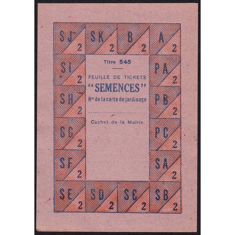 1942 - Titre 545 - Jardin - Semences - Catégorie 2 - Etat : SPL à SPL+