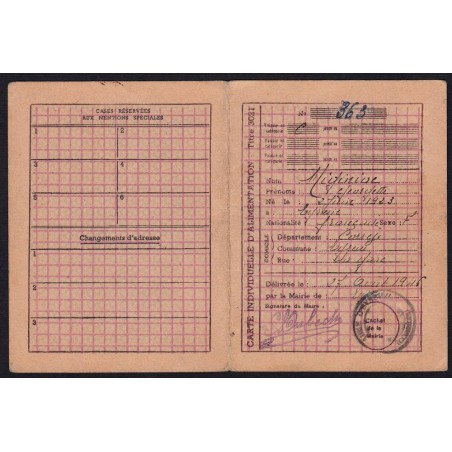 1946 - Titre 3021 - Carte individ. alimentation - Catégorie C - Eyrein (19) - Etat : TTB+