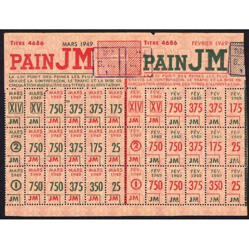 1949 - Titre 4686 - Pain - Catégories J M - Février à mars - Tarare (69) - Etat : TTB