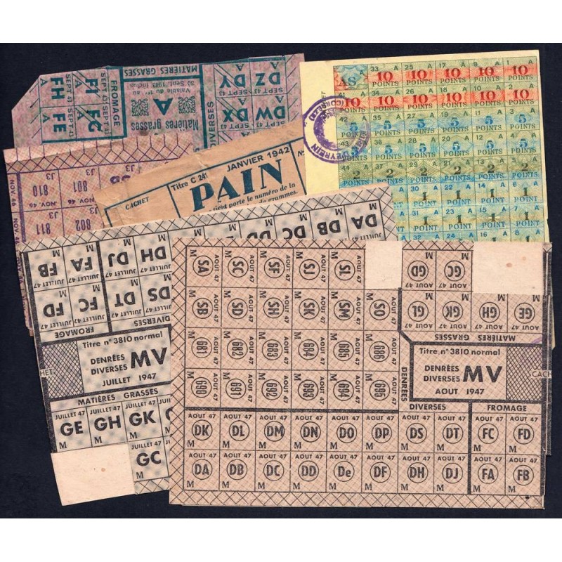 • Ensemble de feuilles de coupons - 1942 - 1943 - 1946 - 1947 - Etat : TB à TTB