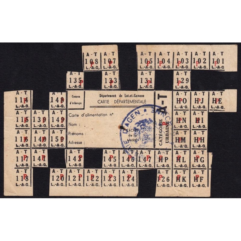 Lot-et-Garonne - 1945 - Carte départementale d'alimentation - Cat. A T - Agen - Etat : TB