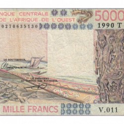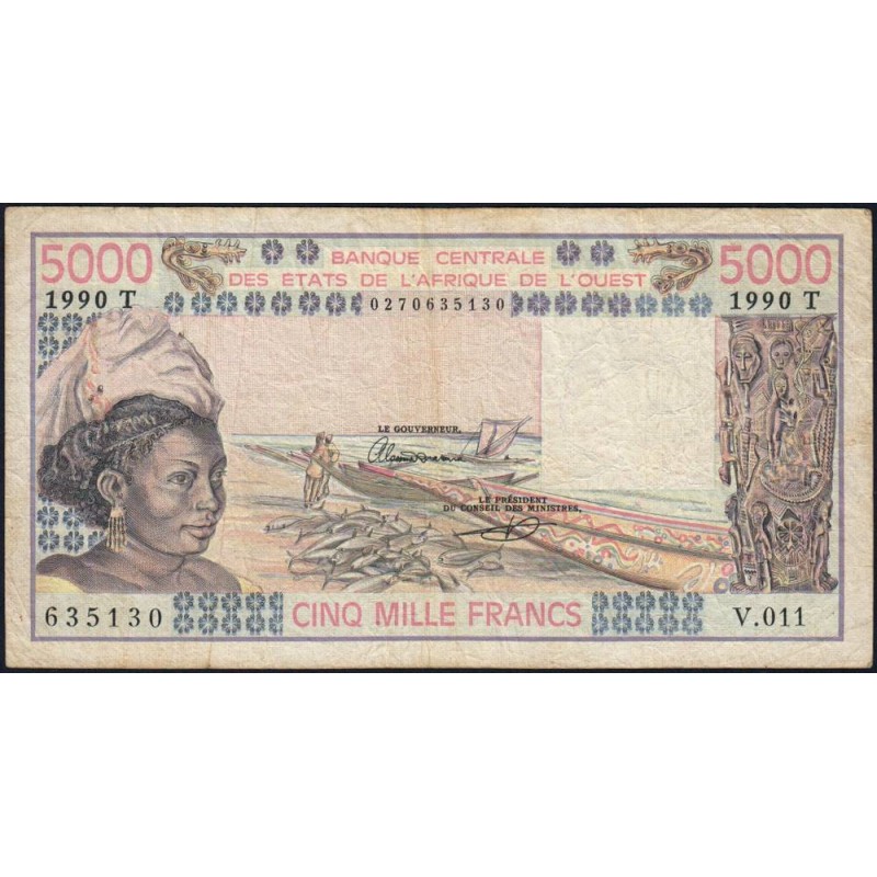 Togo - Pick 808Tj - 5'000 francs - Série V.011 - 1990 - Etat : TB