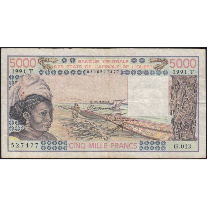 Togo - Pick 808Tk - 5'000 francs - Série G.013 - 1991 - Etat : TB+