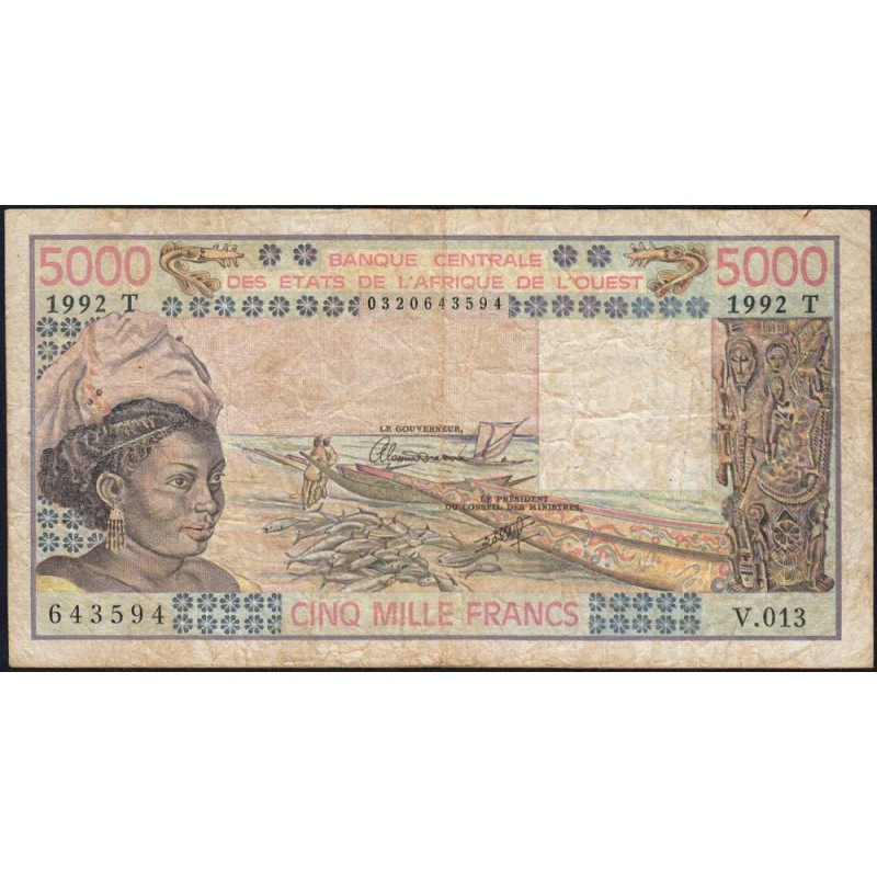 • Togo - Pick 808Tl - 5'000 francs - Série V.013 - 1992 - Etat : TB-