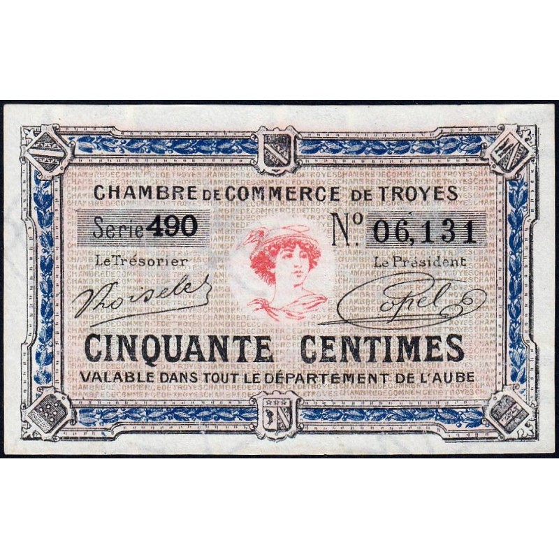 • Troyes - Pirot 124-13 - 50 centimes - Série 490 - 7e émission - Sans date - Etat : pr.NEUF