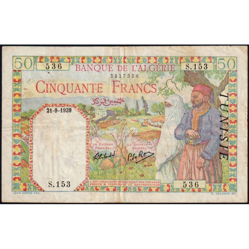 Avers : Femme voilée et homme portant le fez dans un paysage de campagne