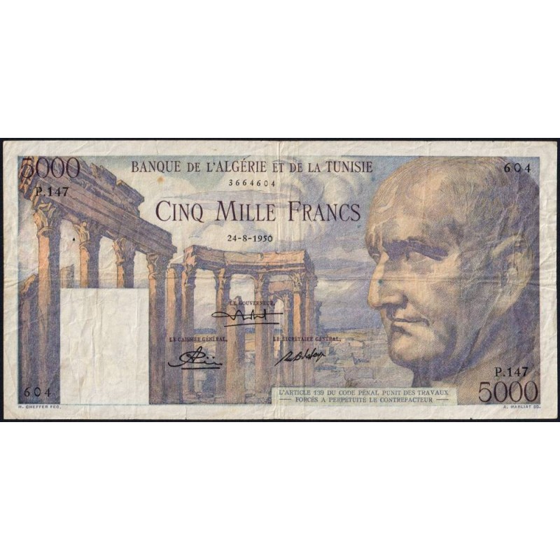 Avers : Ruines romaines de Dougga, portrait de Vespasien (9-79) empereur de 69 à 79