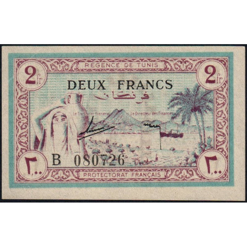 Avers : Femme voilée portant une cruche sur l'épaule, paysan labourant son champ, bateau dans le golfe de Tunis et montagne du djebel Boukornine