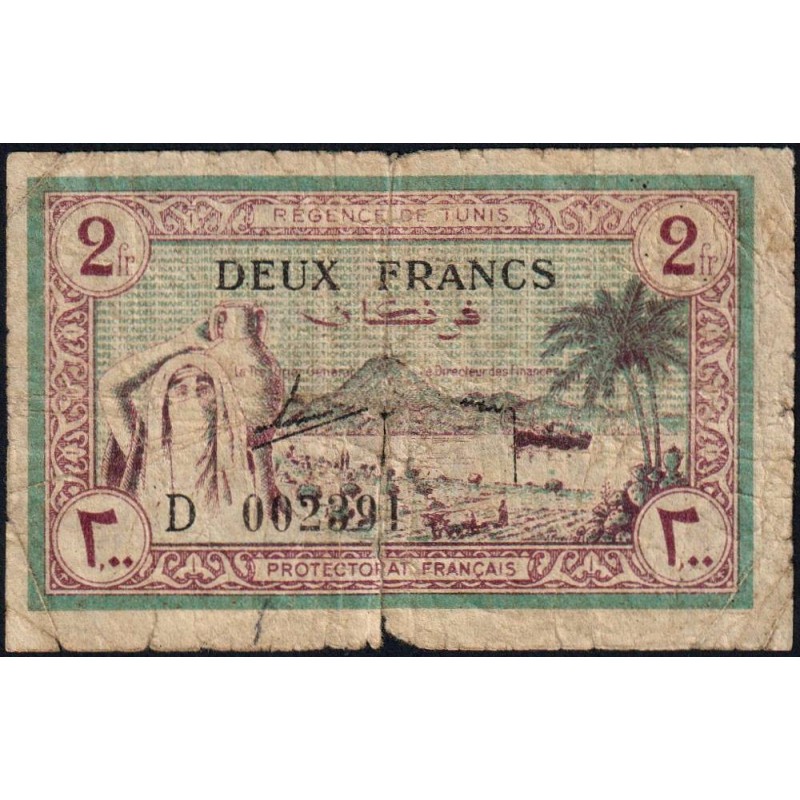 Avers : Femme voilée portant une cruche sur l'épaule, paysan labourant son champ, bateau dans le golfe de Tunis et montagne du djebel Boukornine