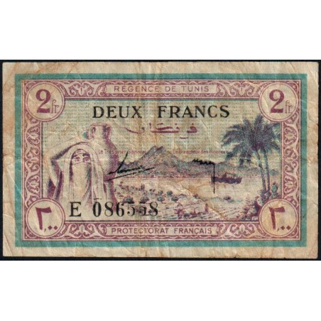 Régence de Tunis - Pick 56 - 2 francs - Série E - 15/07/1943 - Etat : TB-