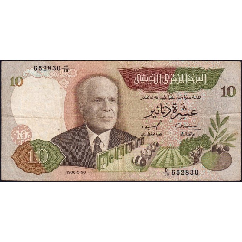 • Tunisie - Pick 84 - 10 dinars - Série D/19 - 20/03/1986 - Etat : TB+