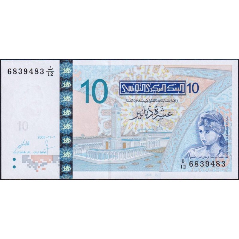 Avers : Portrait de la princesse phénicienne Élissa fondatrice de Carthage au IXe siècle avant notre ère, mosquée El Abidine à Carthage