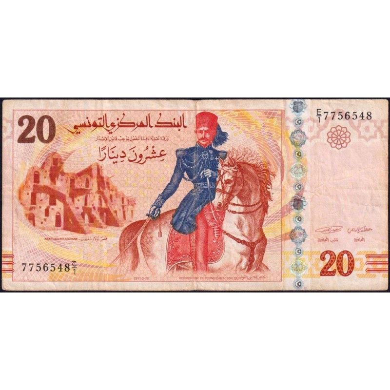 Avers : Kheireddine Ettounsi (1822-1890) grand vizir de Tunis de 1873 à 1877 et grand vizir de l'Empire Ottoman de 1878 à 1879 sur son cheval, village fortifié Ksar Ouled Soltane à Tataouine