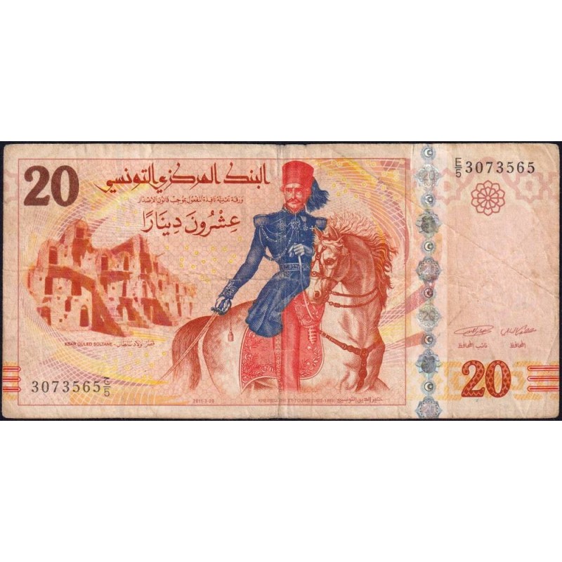 Avers : Kheireddine Ettounsi (1822-1890) grand vizir de Tunis de 1873 à 1877 et grand vizir de l'Empire Ottoman de 1878 à 1879 sur son cheval, village fortifié Ksar Ouled Soltane à Tataouine