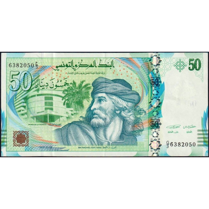 Avers : Portrait de l'écrivain et poète Ibn Rachiq (999-1064), musée de la Monnaie à Tunis
