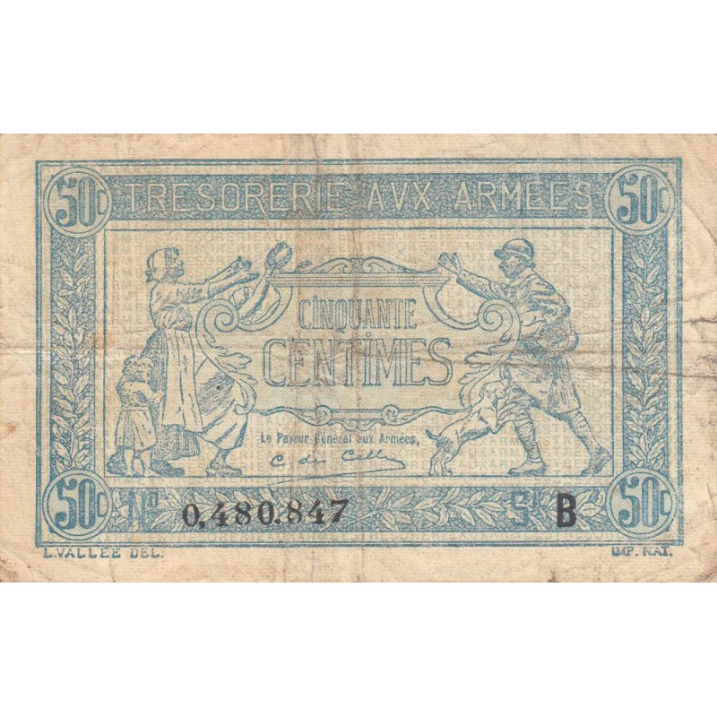 • VF 01-02 - 50 centimes - Trésorerie aux armées - 1917 - Série B - Etat : TB+