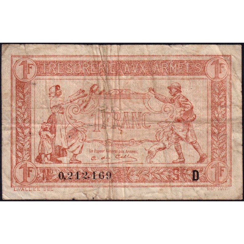 VF 03-04 - 1 franc - Trésorerie aux armées - 1917 - Série D - Etat : TB-