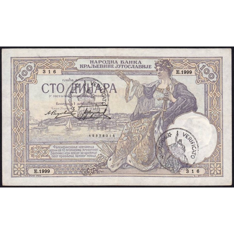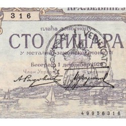 • Yougoslavie - Monténégro - Pick R 13b - 100 dinara - Série E.1999 - 01/12/1929 (1941) - Etat : TTB+